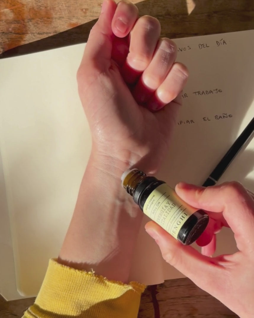 Cuando sientas un golpe de cansancio, aplica el roll on en el interior de tus muñecas y en el plexo solar.